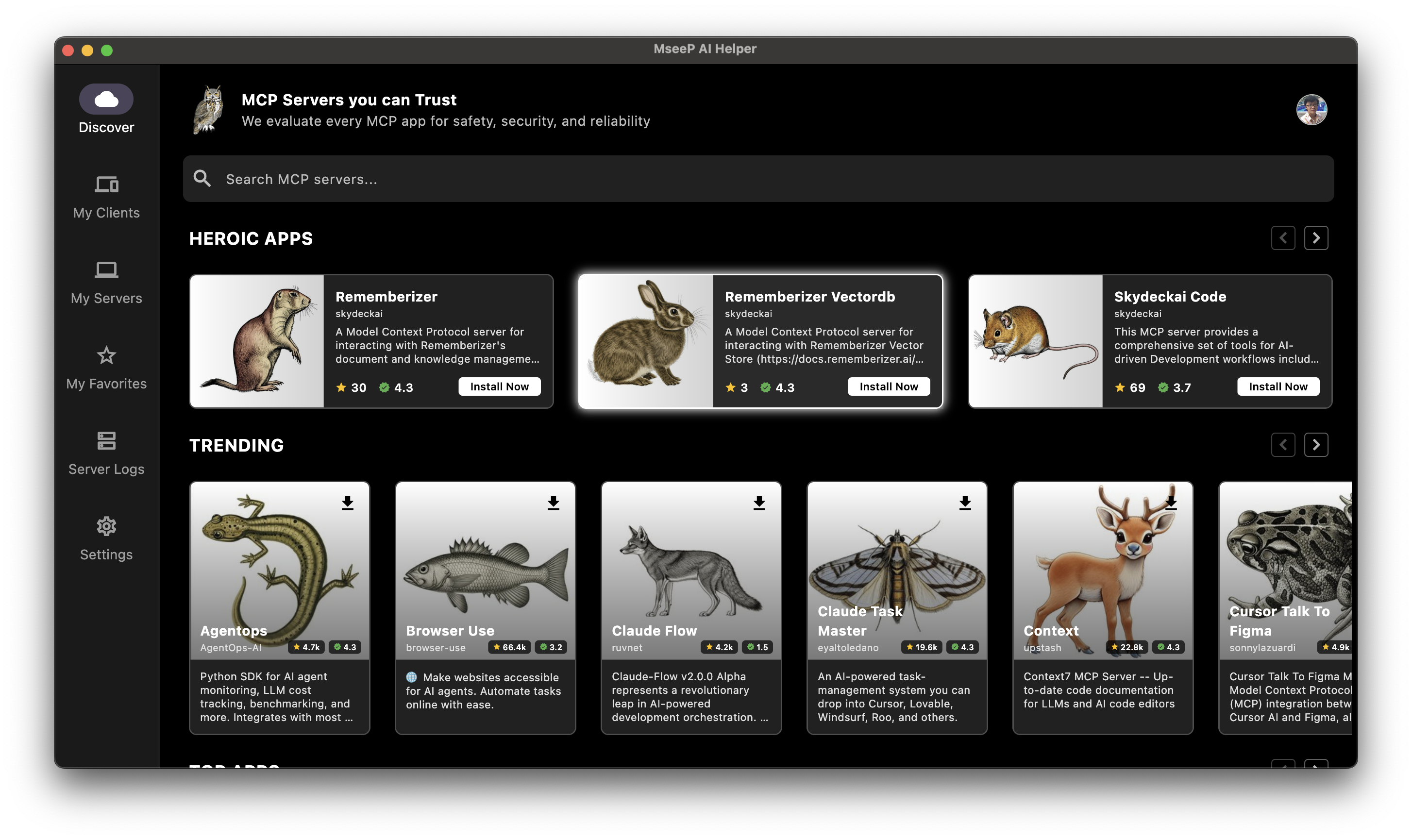 إذا كان لديك تطبيق MseeP AI Helper مثبتًا، يمكنك البحث عن "Rememberizer" وتثبيت المcp-server-rememberizer.